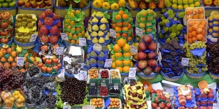 وسجل سعر التفاح المصرى من 5 إلى 9 جنيهات.. والكانتلوب من 3 إلى 7 جنيهات، والبلح السيوي 20 جنيها والبلح الأسواني بسعر 16 جنيها، والجوافة من 5 إلى 9 جنيهات والشمام من 4 إلى 7 جنيهات، المانجو البلدى بسعر 15 جنيها، البطيخ من 8 إلى 10 كيلو بسعر يترواح ما بين 38 و40 جنيها.