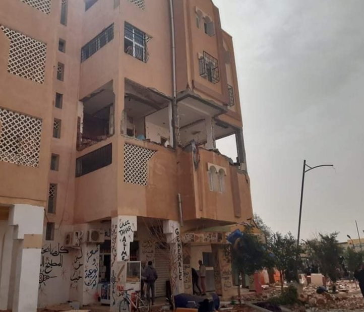 وقالت الحماية المدنية في الجزائر ببيان: تدخلت وحداتنا بالأغواط بحي المحافير على تسرب غاز المدينة تبعه انفجار بشقة بالطابق 02 لعمارة تسبب في إصابة 17 شخص منهم 02 بحروق خطيرة و 15 أخرين بإصابات خفيفة وحالات صدمة، كما تم تسجيل انهيار جدران، زجاج وأبواب شقتين مجاورتين، وزجاج بعض السيارات المركونة بالقرب من العمارة.