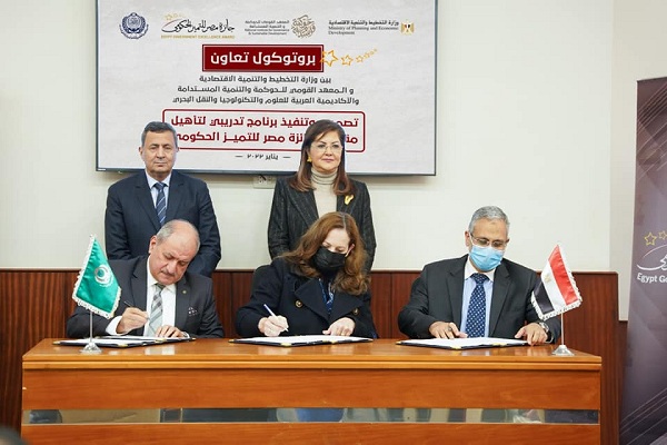 شهدت اليوم الدكتورة هالة السعيد، وزيرة التخطيط والتنمية الاقتصادية والدكتور عادل بلال، نائب رئيس الأكاديمية العربية للعلوم والتكنولوجيا والنقل البحري توقيع بروتوكول تعاون بين الوزارة ممثلة في جائزة مصر للتميز الحكومي والمعهد القومي للحوكمة والتنمية المستدامة، والأكاديمية ممثلة فى معهد الإنتاجية والجودة بشأن تصميم وتنفيذ برنامج تدريبي لتأهيل مقيّمي جائزة مصر للتميز الحكومى.