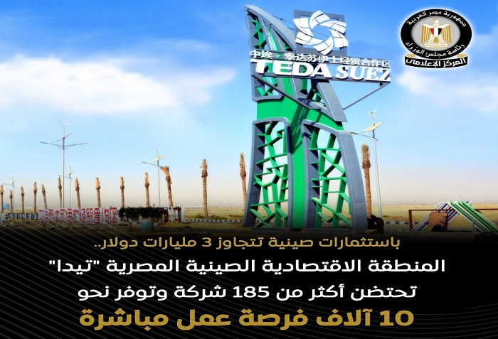 أضحت المنطقة الاقتصادية الصينية المصرية "تيدا" الواقعة بالمنطقة الاقتصادية لقناة السويس منصة صناعية عالمية,,,