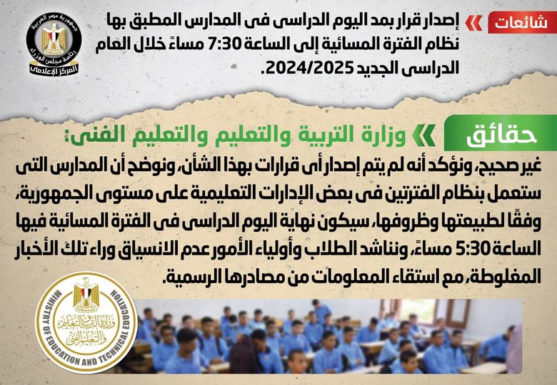 تداولت بعض صفحات التواصل الاجتماعي أنباء بشأن تأجيل موعد بدء الدراسة بالمدارس الحكومية للعام الدراسي الجديد 2024/2025.